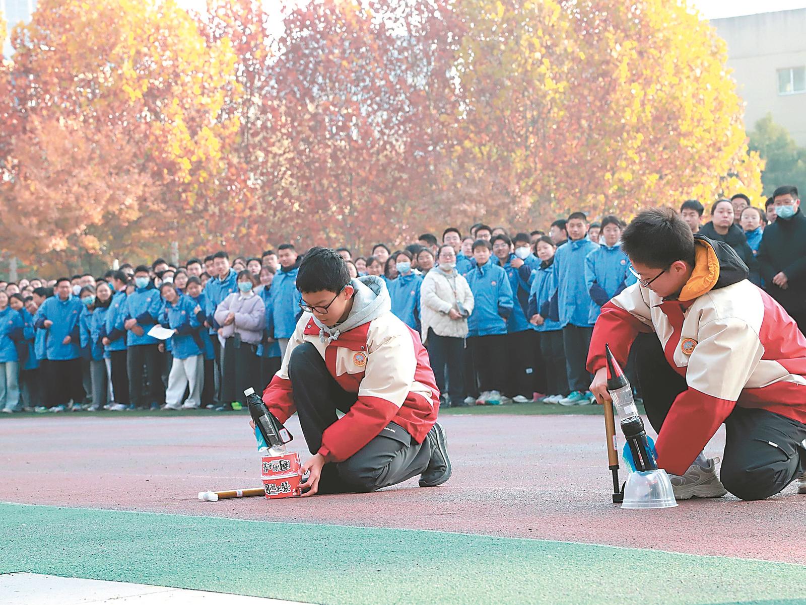 12月8日,合肥北校操场上,学生们正在飞行自制水火箭。 38 中学。学校科学老师利用课间休息时间帮助学生建造水火箭,忽视了孩子们的科技梦想。通讯员 温超 摄 12月8日,芜湖市繁昌区范阳镇城关小学安排学生开展从迷迭香中提取纯露的实践活动。活动以特色课程将教育与劳动结合起来,让学生在实践中体验劳动的乐趣,感受科技之美。肖本祥 摄 12月8日,淮北市象山区刘桥匡小学举办丰富多彩的体育务虚活动。学生们在课间享受体育运动,同时练习五禽戏、空竹、滚铁环、踢毽子等传统体育项目。通讯员 万善超 摄