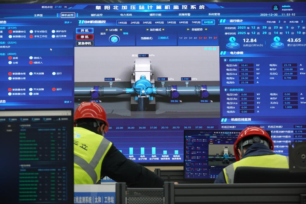 12月30日,安徽省阜阳市颍泉区引江济淮二期工程阜阳北增压站三台大型水泵开始增压,引水逐步送至太和县。至此,皖北地区已具备更换地下水源的条件。 12月30日,在安徽省阜阳市颍泉区引江济淮二期工程阜阳北增压站,操作人员监控设施运行情况。新华社记者 赵金正 摄 皖北地区水资源短缺,长期依赖地下水。一些地区地下水氟、盐含量超标,影响居民健康。为解决皖北地区水质问题,安徽省大力推进近年来,皖北地区人民群众的饮水水源逐步由地下水转向优质地表水。引江济淮工程二期输水线路全长658.7公里,其中9个工程涉及皖北人民引水工程。确保引水流向阜阳、亳州、蚌埠、淮北、苏州等皖北城市供水腹地,保障粮食基地、能源基地等重点区域供水安全。淮河集团有限公司皖江引水建设管理部部长陈光明表示,该工程的通水标志着皖北地区具备了改变地下水源的条件,对于优化区域水资源配置格局具有重要意义。保障区域水安全,促进地方经济发展。引江济淮工程连接菜子湖、巢湖、瓦部湖三大湖泊和淮北平原骨干水系。二期工程建成实施后,将在国家水网功能、经济循环功能、防灾减灾救灾功能等方面发挥“底线”和“安全卫士”作用,为加快皖北地区全面振兴提供重要基础设施条件。 (记者赵金正)